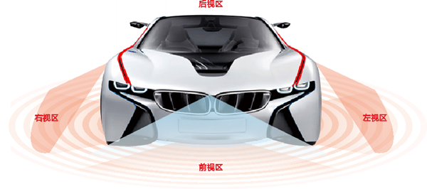 360度全景泊車影像通過安裝在車身前后左右的4個(gè)廣角攝像頭,同時(shí)采集車輛四周的影像,經(jīng)過圖像處理單元矯正和拼接后,形成一幅車輛四周的全景俯視圖,實(shí)時(shí)傳送到中控臺(tái)的顯示設(shè)備上(如DVD導(dǎo)航)。駕駛員坐在車中即可直觀地看到車輛所處的位置以及車輛周圍的障礙物,從容操控車輛泊車入位或通過復(fù)雜路面。