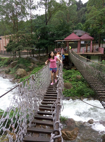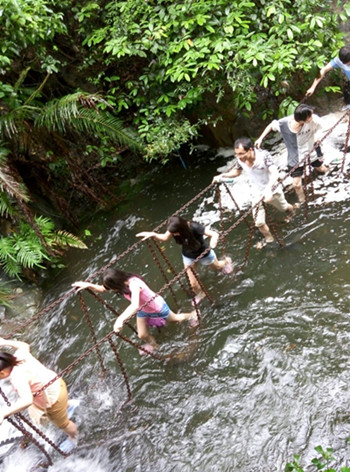 某些女生一馬當(dāng)先,搶在前面,讓同行的男生也為之汗顏。在這條探險的路上,水潭瀑布、鐵索云梯、浮橋石丘接連不斷,樹木蒼翠蔥綠,風(fēng)景秀美。果真是不虛此行。無論平時是喜歡安靜的還是活潑的,在野外則充分展現(xiàn)了大家火力全開的精神風(fēng)貌。不僅增加的了大家之間的互相了解,更展現(xiàn)了大家團結(jié)一心的企業(yè)凝聚力。