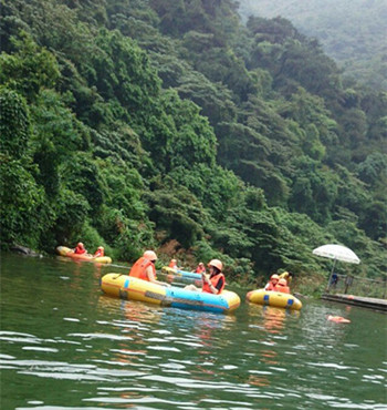 探險結(jié)束之后,下午則是令人期待的漂流。不過很遺憾并沒有全員一起漂流,有一些人沒有過去。我們在山谷的上游登上皮劃艇,每一組男女搭配。不過有些不愿意同男生一起戲水的女生就自己組隊,不過在后來的陌生人水戰(zhàn)中被噴的挺慘。宋導(dǎo)倒是樂意做一個合格的觀眾。不過看到有些人被“敵人”攻擊的太慘,宋導(dǎo)也看不下去,于是并不吝嗇教她們左邊劃幾下,右邊劃幾下,把皮劃艇劃走,否則誰也不知道她們要怎么從角落里面出來。