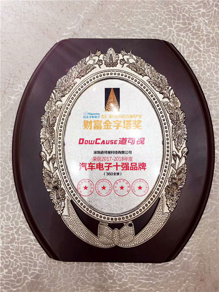 會議現(xiàn)場,在近千人的見證下,深圳道可視科技有限公司憑借強大的技術(shù)研發(fā)能力、穩(wěn)定的產(chǎn)品性能和良好的售后服務(wù),贏得了客戶的廣泛好評,榮獲第六屆財富金字塔“2017-2018年度工匠獎”和“2017-2018年度汽車電子(360全景)十強品牌”兩項大獎。