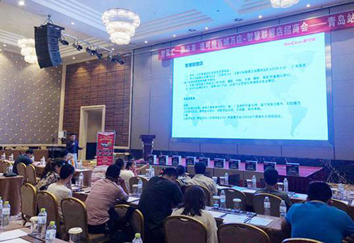 會(huì)議直奔主題,就目前火爆的“智慧聯(lián)盟店”,道可視區(qū)域經(jīng)理趙波進(jìn)行了重點(diǎn)介紹,他從市場(chǎng)體系、加盟方案、銷售模式和加盟優(yōu)勢(shì)四個(gè)維度進(jìn)行了詳細(xì)宣講,引起現(xiàn)場(chǎng)終端門店的極大興趣。