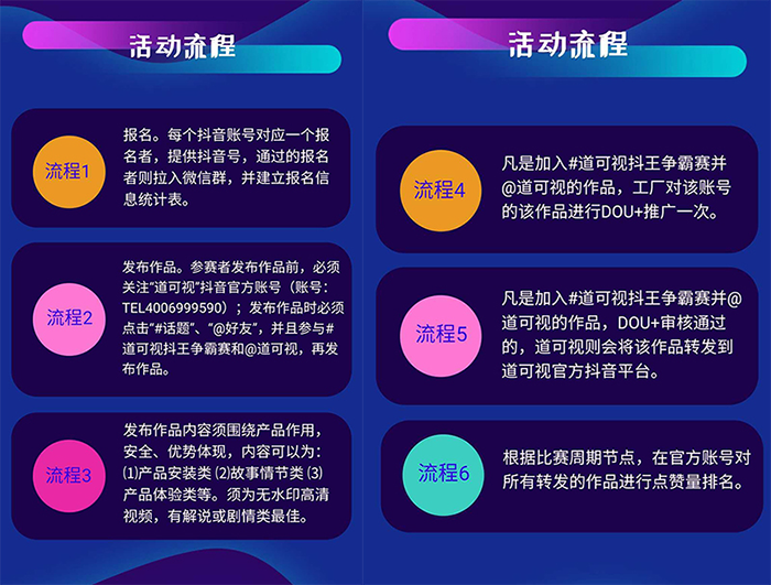流程4:凡是加入#道可視抖王爭霸賽并@道可視的作品,工廠對該賬號的該作品進行DOU+推廣一次。