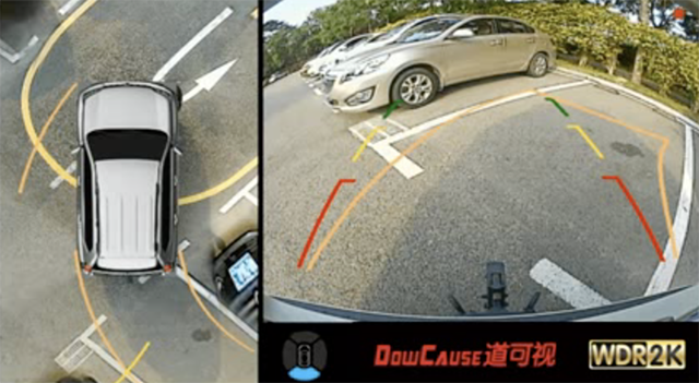 其內(nèi)置可跟隨方向盤方向而轉(zhuǎn)動的前后精準軌跡線,是直接讀取原車ESP的數(shù)據(jù),識別行車軌跡,使得道可視軌跡線誤差小于3CM,相比于行業(yè)同類產(chǎn)品,更加精準,讓停車更加輕松且到位。