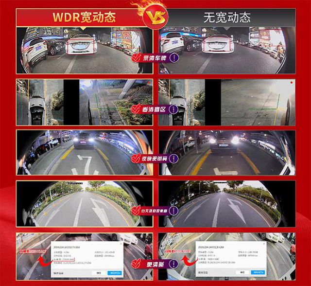 道可視4顆攝像頭均植入WDR算法,在白天或是夜間復雜強光環(huán)境下,有效抑制強光,解決夜間強光環(huán)境下的炫光問題,避免汽車大燈照射下造成影像顯示,以及影像記錄“一團白色”的尷尬,能夠清晰的記錄及看清車牌和路況。