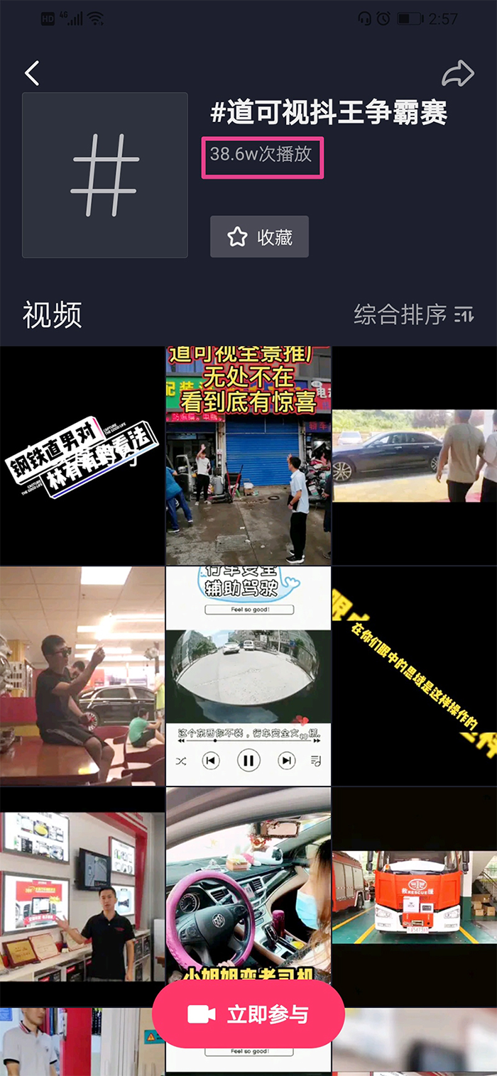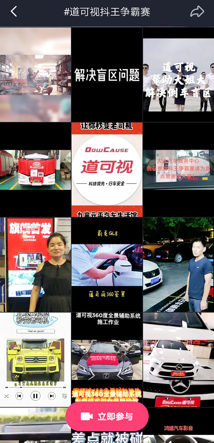 再來回顧一下本次活動的參與規(guī)則,2020道可視“抖王”爭霸賽第一季賽程周期為2020年7月20日-9月30日,只要你有抖音賬號,只要你是道可視代理商、4S店集團、經銷商、員工、用戶等均可以參與到“抖王”爭霸賽中來。