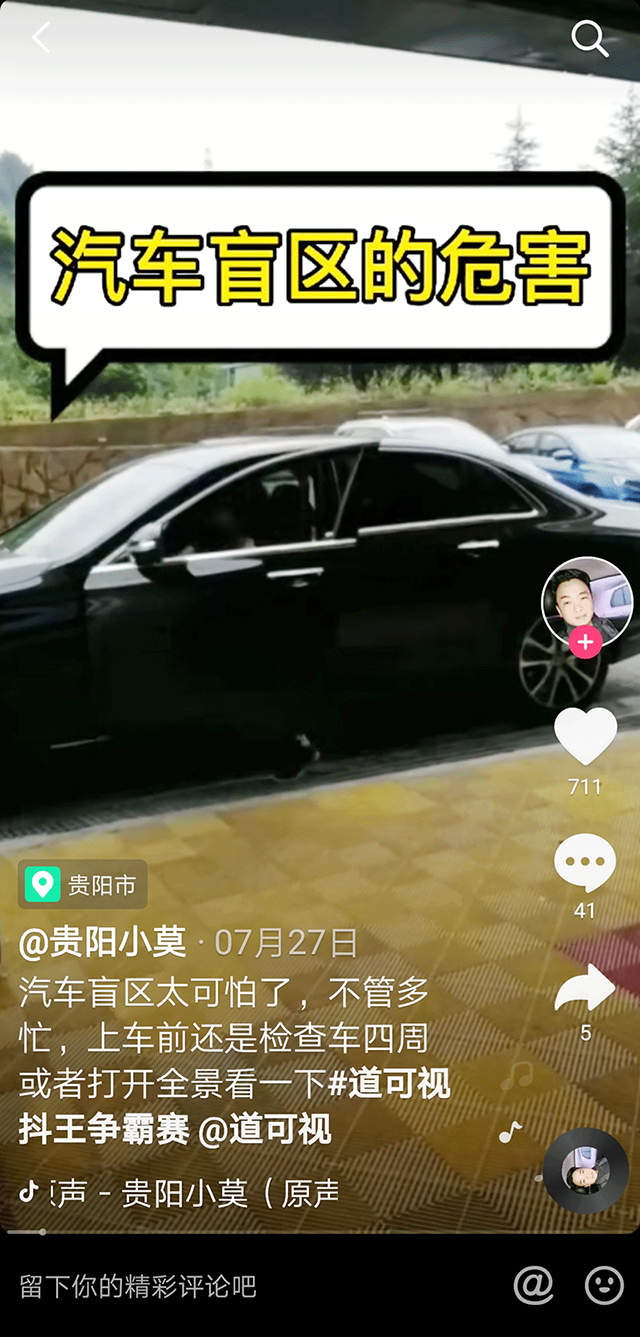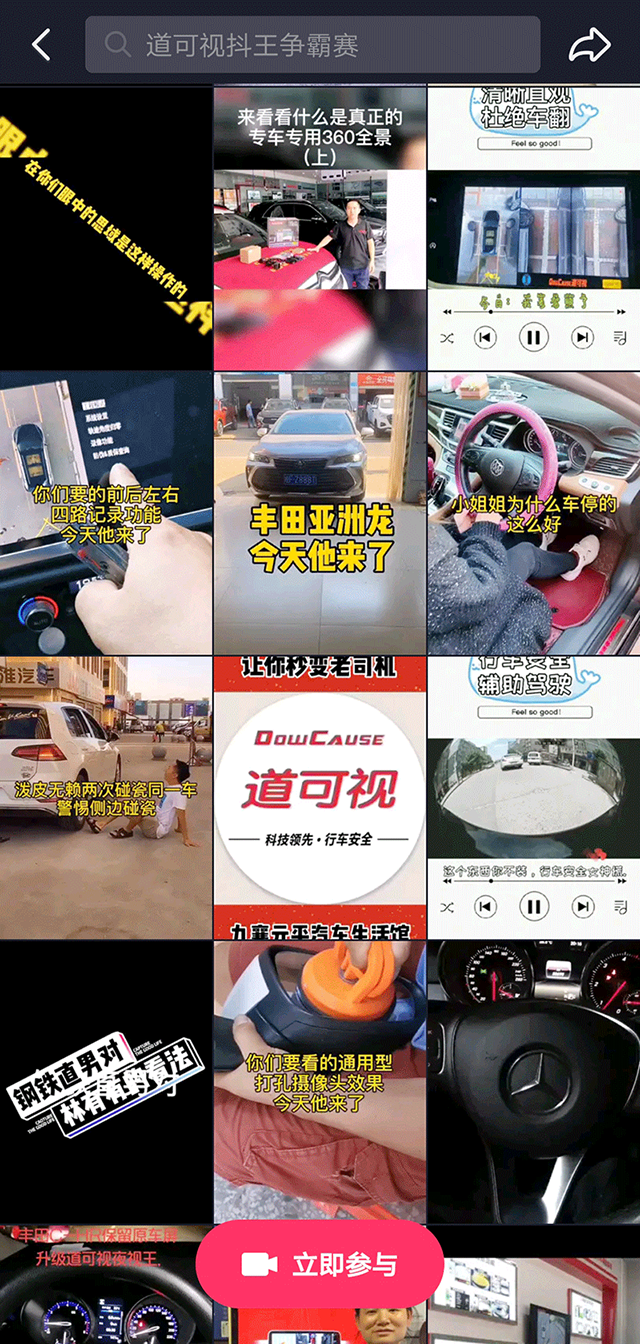 “抖王”爭(zhēng)霸賽是內(nèi)容創(chuàng)新新玩法的先行者和探索者,道可視用簡(jiǎn)單、直接的方式結(jié)合抖音的魔性平臺(tái),成功引爆了這次精彩活動(dòng),在給用戶提供了娛樂體驗(yàn)的同時(shí),也讓品牌得到了高度曝光,引發(fā)大家對(duì)于行車安全的關(guān)注。