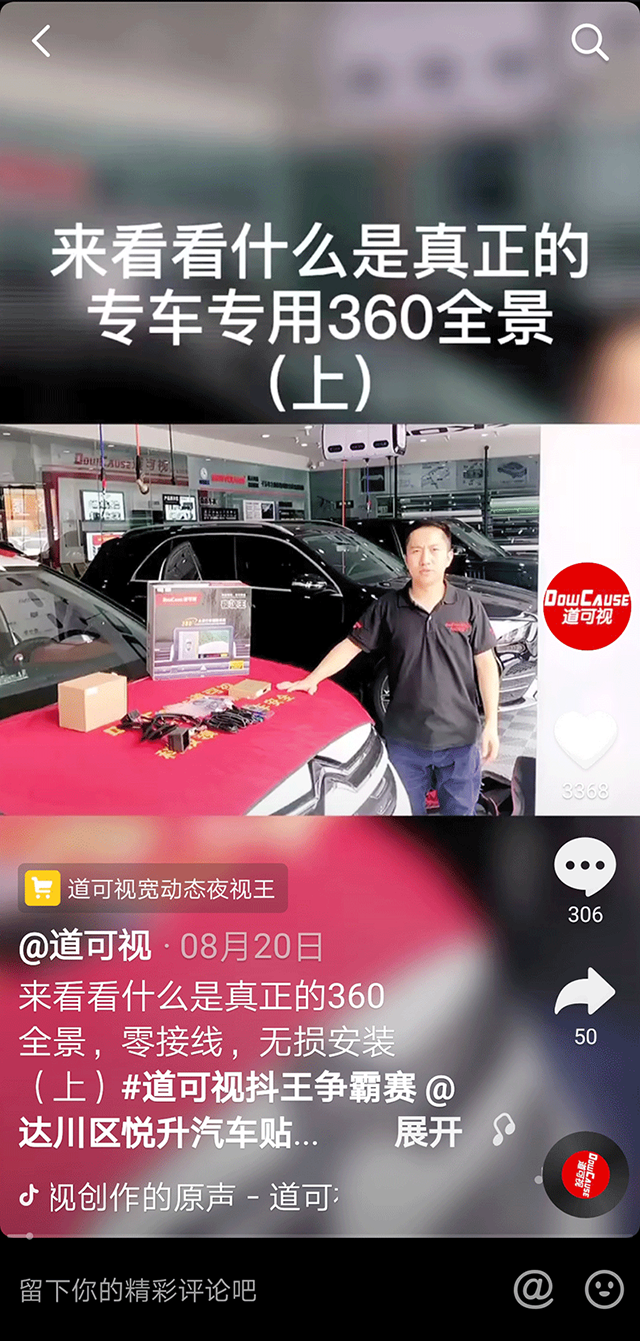據(jù)道可視官抖顯示,截止至9月30日活動(dòng)結(jié)束,道可視2020“抖王”爭(zhēng)霸賽第一季已獲得495.7W次的播放量,上傳的原創(chuàng)視頻有491個(gè),來(lái)自全國(guó)各地的道可視代理商們紛紛曬出了自家的“寶貝”,掀起了一陣抖音曬360°全景的熱潮。