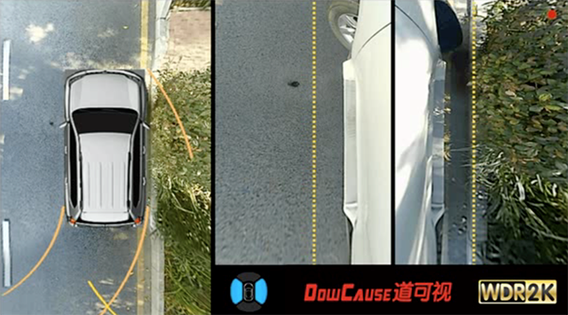 在側(cè)邊停車或倒車入庫時,道可視360°全景行車輔助系統(tǒng)通過“倒車影像”+“精準(zhǔn)輔助線”的方式,精準(zhǔn)計算出行車軌跡,顯示車輛泊車時車身所經(jīng)過的位置,輔助駕駛員準(zhǔn)確輕松泊車,避免事故。